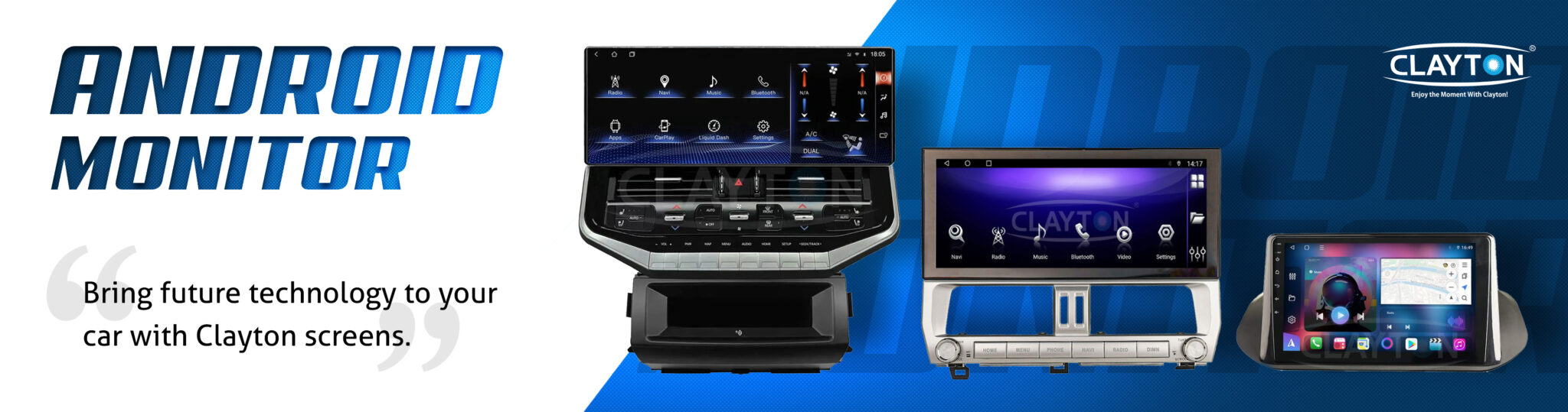 Clayton offers a wide range of high-quality car accessories designed to improve your driving experience. Our products include car multimedia systems, cameras, Android headrest monitors, and mirrors. We use the latest technology and materials to ensure that our products are reliable, functional, and stylish.