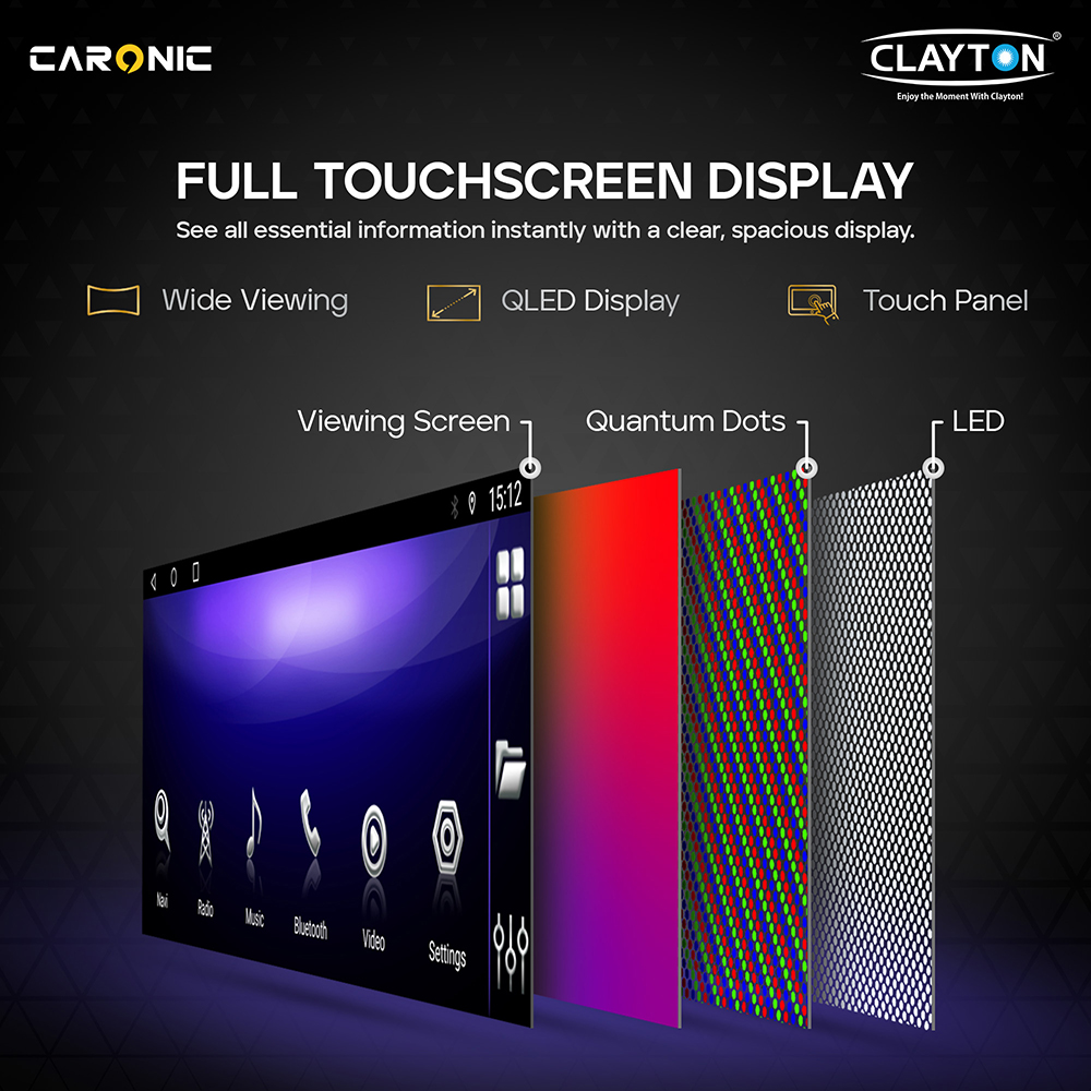Enjoy a premium full touchscreen display designed for clarity and comfort. The advanced QLED screen with quantum dot technology delivers vibrant colors, sharp details, and wide viewing angles for easy visibility from any seat. Its responsive touch panel ensures smooth, accurate control, while the bright LED backlight enhances readability day or night. Perfect for navigation, media, and controls, it offers a spacious, immersive viewing experience.