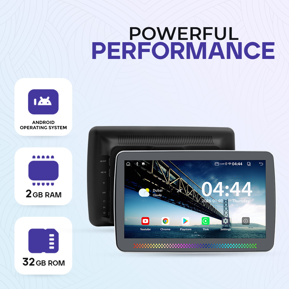 Experience powerful entertainment on the go with the Clayton rear-seat display. Powered by Android OS, it delivers smooth performance with 2GB RAM and 32GB internal storage for apps, videos, and games. Enjoy YouTube, Chrome, Play Store, and more on a clear, vibrant screen. Easy to use and perfect for passengers, it transforms every journey into a fun, connected, and comfortable experience.