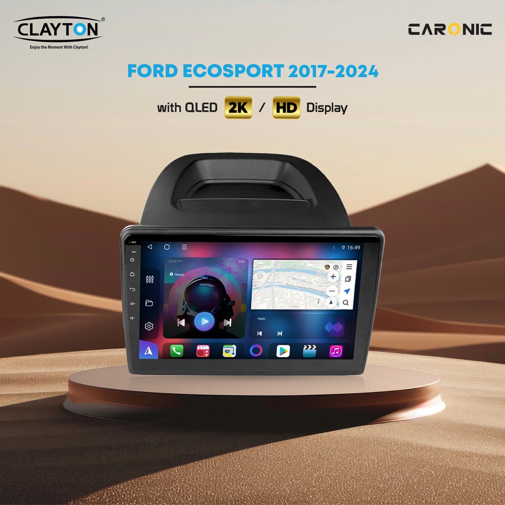 Upgrade your Ford EcoSport (2017-2024) with this premium QLED 2K HD display infotainment system by Clayton. Enjoy crystal-clear visuals, seamless navigation, music streaming, and smart apps all in one sleek unit. Designed specifically for your vehicle, it blends perfectly into the dashboard while delivering advanced performance and convenience. Transform your driving experience with high-resolution clarity and modern functionality only with Clayton.