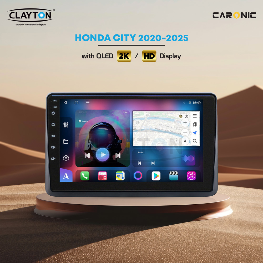 Enhance your Honda City (2020-2025) with Clayton’s state-of-the-art QLED infotainment system. Featuring a stunning 2K HD display, it offers vibrant visuals, fast performance, and effortless access to music, maps, calls, and apps. Designed for a sleek, factory-style fit, this upgrade brings modern tech and convenience to your dashboard making every drive smarter, more connected, and visually impressive.