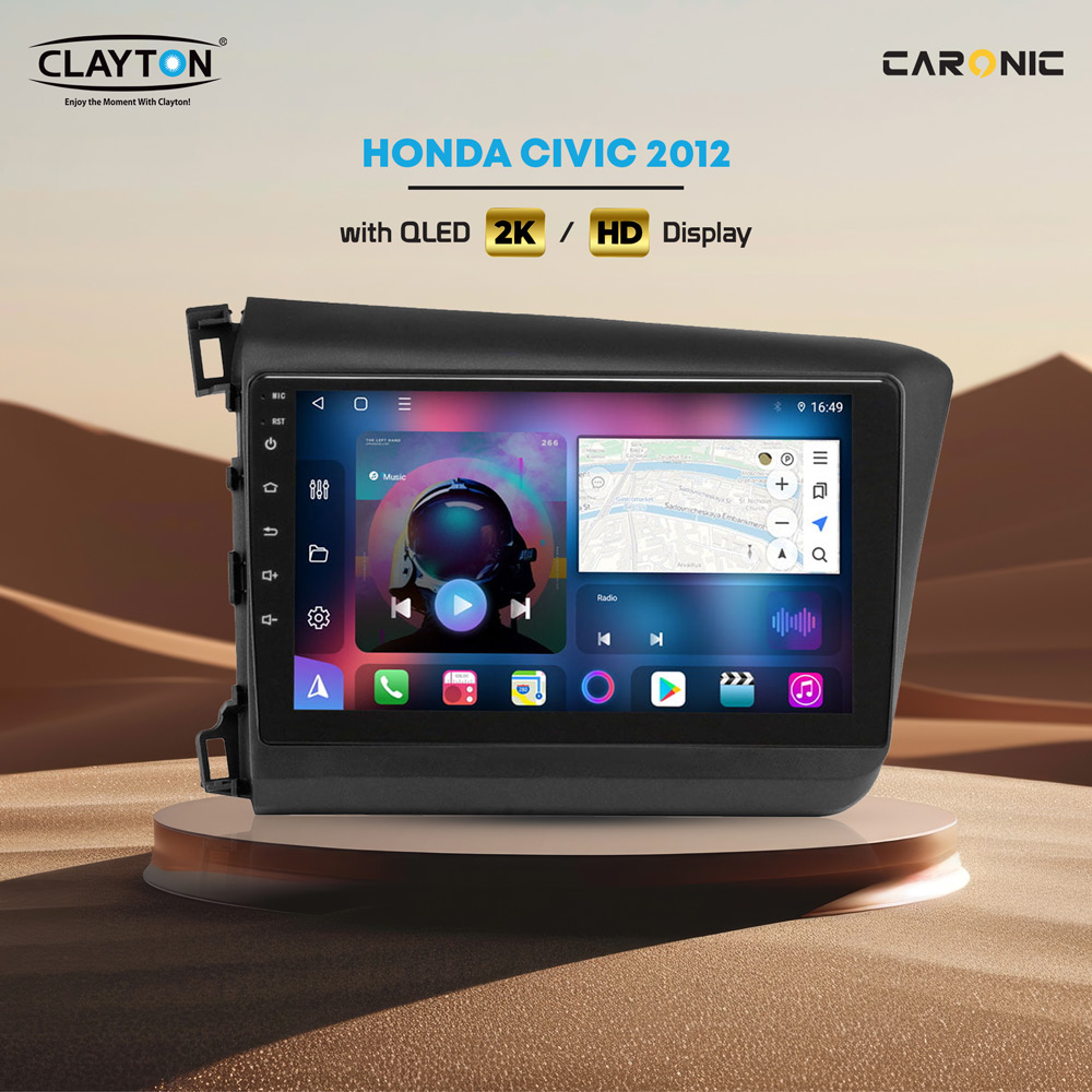 Upgrade your Honda Civic 2012 with the Clayton QLED 2K HD infotainment system. Featuring a sharp, high-resolution display and a user-friendly interface, it offers smooth access to music, navigation, apps, and more. Designed for perfect dashboard integration, this premium unit combines modern tech with everyday convenience. Enjoy smarter driving, vibrant visuals, and seamless connectivity all in one sleek, high-performance package.