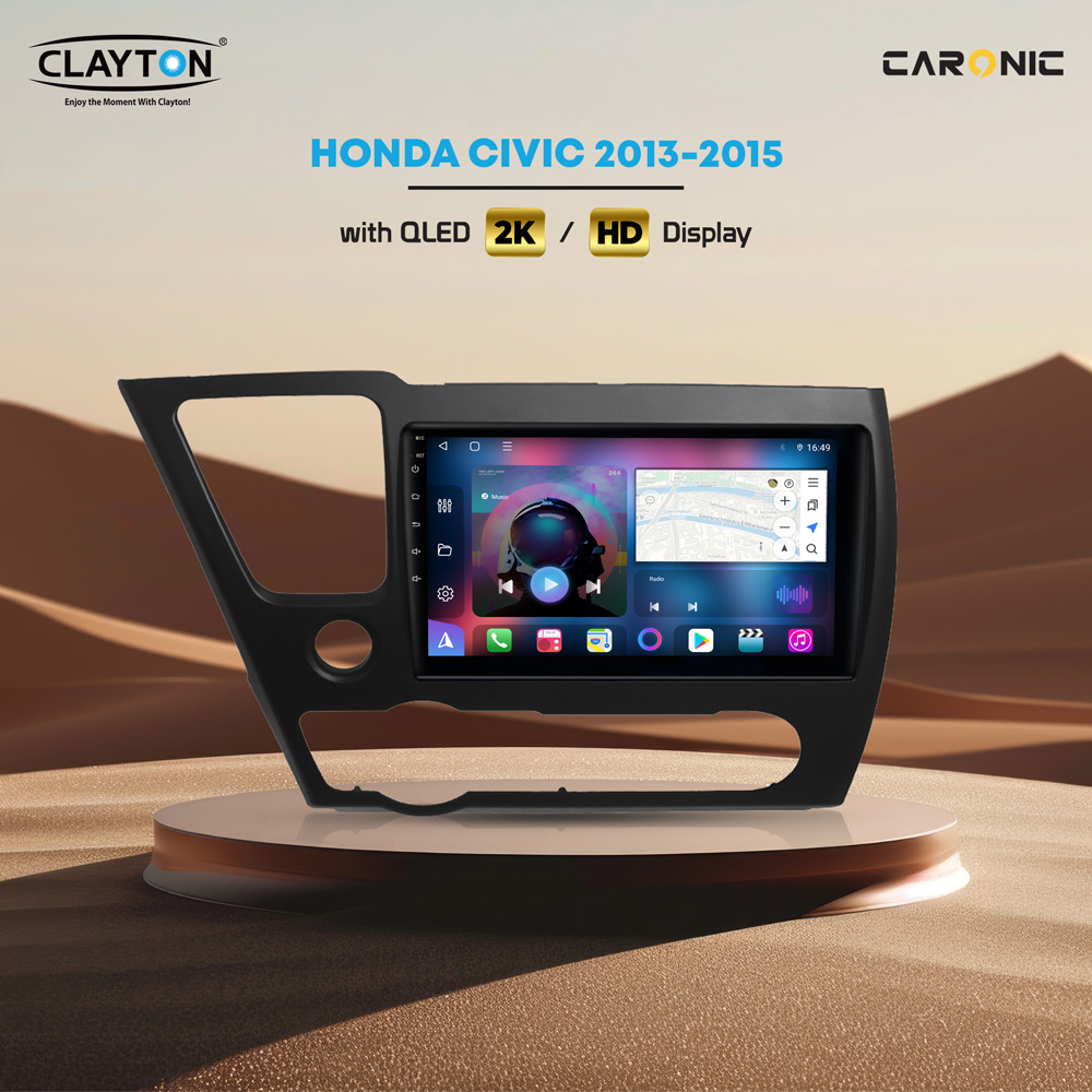 Upgrade your Honda Civic 2013-2015 with the CLAYTON QLED infotainment system featuring a brilliant 2K HD display. Enjoy a vibrant, responsive touchscreen with built-in navigation, music, and smart connectivity features for a modern driving experience. Designed for a perfect dashboard fit, this unit offers enhanced functionality and sleek style. Easy to install and user-friendly, it’s the ultimate multimedia upgrade for your Civic.