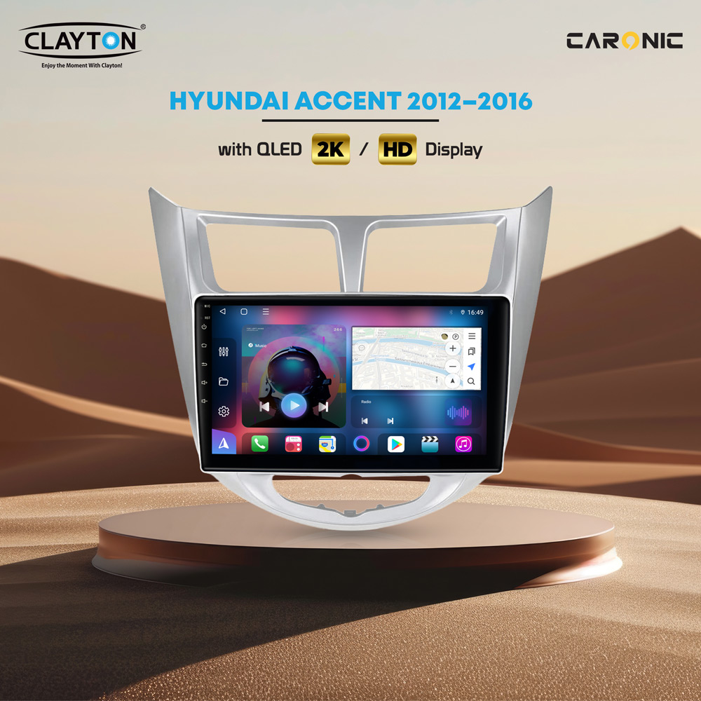 Upgrade your Hyundai Accent (2012-2016) with the CLAYTON QLED 2K HD Display. Enjoy stunning visuals, seamless navigation, and advanced multimedia features all in one modern touchscreen unit. Designed for a perfect dashboard fit, this infotainment system brings premium tech and convenience to your daily drive. Stay connected, entertained, and in control with CLAYTON’s high-performance car upgrade solution.