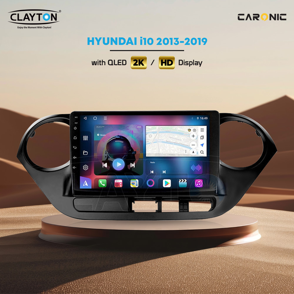 Enhance your Hyundai i10 (2013-2019) with the CLAYTON QLED 2K HD Display infotainment system. Enjoy vibrant visuals, advanced navigation, and smart connectivity all in one stylish upgrade. Featuring a user-friendly interface, this high-resolution display transforms your driving experience with seamless multimedia and convenience. Designed for perfect dashboard integration, it’s the ideal choice for a modern, tech-savvy ride. Elevate your journey with CLAYTON innovation.