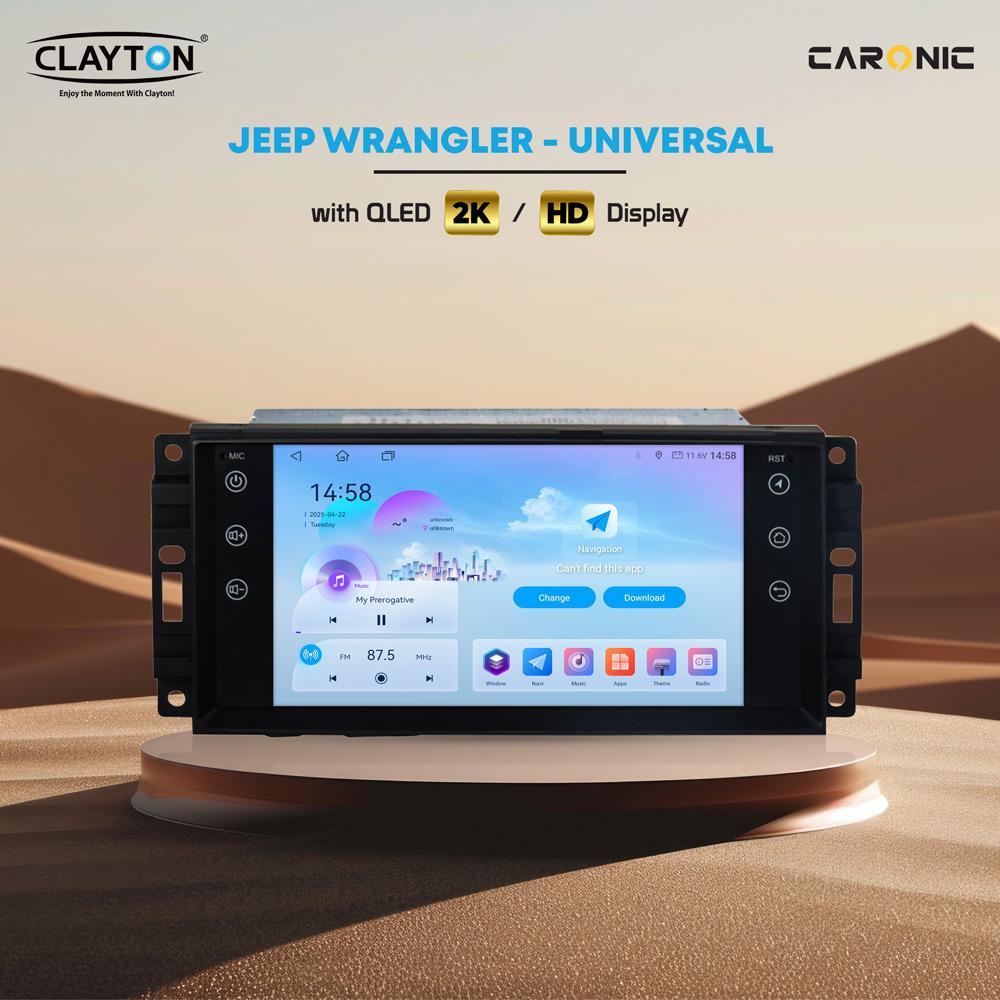 Transform your Jeep Wrangler with this Universal Android Stereo featuring a stunning 2K QLED HD display. Built for both performance and style, it offers an intuitive interface with access to music, FM radio, apps, Bluetooth connectivity, and navigation support. Designed for seamless integration, this head unit delivers vibrant visuals and enhanced in-car entertainment, making every journey smarter and more enjoyable. Perfect fit, premium feel, and advanced features in one package.