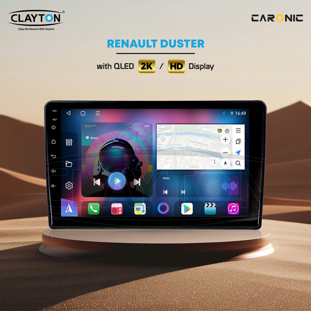 Elevate your Renault Duster with the CLAYTON QLED 2K/HD Display infotainment system. Enjoy stunning visuals, intuitive touch controls, and effortless access to navigation, music, and apps all in one powerful unit. Engineered for a flawless fit and enhanced in-car experience, this premium upgrade blends advanced technology with sleek design. Drive smarter and stay connected with CLAYTON’s high-performance multimedia solution built for modern journeys.