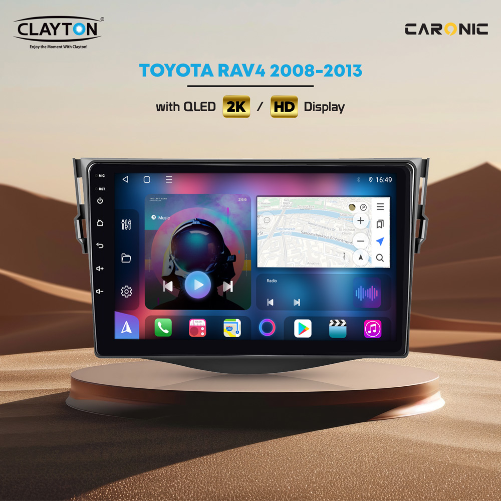 Upgrade your Toyota RAV4 (2008-2013) with the CLAYTON QLED 2K HD Display infotainment system. This sleek, high-resolution unit delivers vivid visuals, smart navigation, and seamless multimedia access for a next-level driving experience. Designed for a perfect dashboard fit, it combines modern technology with user-friendly controls. Bring your RAV4 up to date with enhanced functionality, entertainment, and style.