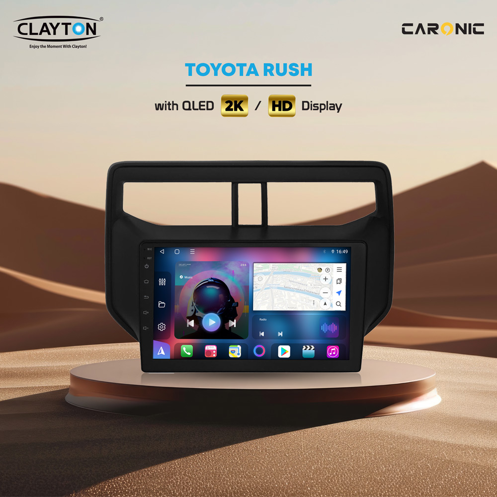 Upgrade your Toyota Rush with the CLAYTON QLED 2K HD Display for a premium in-car experience. This advanced system offers crystal-clear visuals, smooth navigation, and full multimedia access all in one sleek unit. With seamless app integration, music control, and user-friendly interface, it’s designed to enhance every journey. Perfectly fitted for Toyota Rush, this modern infotainment upgrade brings style, convenience, and technology to your dashboard.