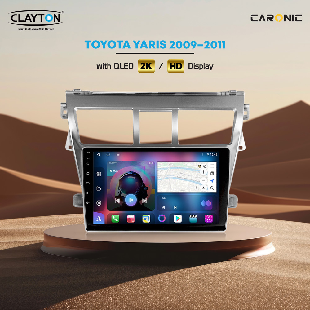 Transform your Toyota Yaris 2009-2011 with the CLAYTON QLED 2K HD display system. This premium upgrade offers vibrant visuals, advanced navigation, and seamless multimedia control. Designed for a precise OEM fit, it blends perfectly with your dashboard while delivering a smarter, more connected driving experience. Enjoy music, maps, and apps in crystal-clear quality all from a stylish and high-performance infotainment solution by CLAYTON.